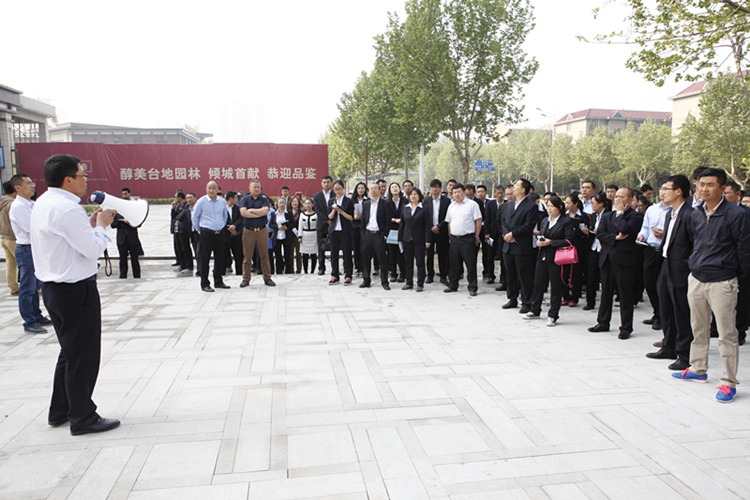 上午9時,在公司副董事長孫鵬先生的帶領下,大家來到金泰華府項目。“歡迎公司領導和各位同事來到金泰華府項目!”華府項目部經理姬常寶手持擴音器表示歡迎。啟翔金泰華府項目經理吳維龍向大家詳細介紹了金雀山的位置、歷史等情況。跟隨工作人員,大家還參觀了華府沿街商業、臺地園林景觀及清水樣板間。