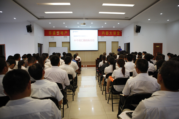 7月8日晚19時,在這炎炎夏日的傍晚,公司六樓會議室座無虛席,來自地產公司、奧晟物業、啟翔房產和中匯地產的領導與員工早早的來到會場。營銷總監光文廣為大家帶來的執行力系列培訓之《十個詞匯里的執行力》。