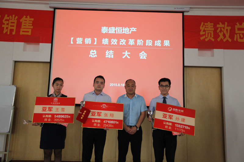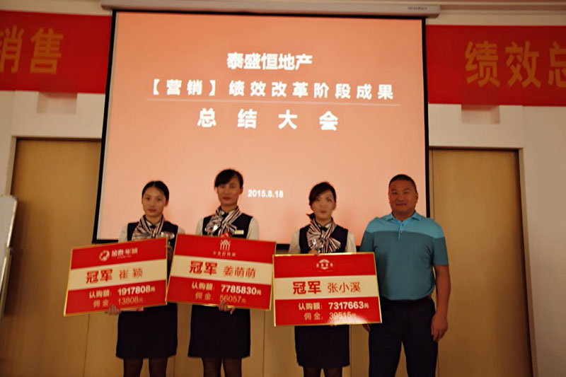 最后,孫總對(duì)本次銷售績(jī)效總結(jié)會(huì)做了重要講話。首先,孫總肯定了營(yíng)銷績(jī)效改革取得的成果,并對(duì)銷售先進(jìn)個(gè)人進(jìn)行了肯定和鼓勵(lì)。接著,孫總進(jìn)一步闡釋了召開(kāi)本次總結(jié)會(huì)的意義,以此為契機(jī),做產(chǎn)品的同時(shí)更要追求品質(zhì),進(jìn)而完成只有最好的品牌追求!并且聯(lián)系當(dāng)代名企改革案例,證實(shí)泰盛恒目前實(shí)行的大項(xiàng)目制是改革趨勢(shì),而且泰盛恒會(huì)在目前秉承的高標(biāo)準(zhǔn)高質(zhì)量的基礎(chǔ)上堅(jiān)持更高的標(biāo)準(zhǔn),高遠(yuǎn)的目標(biāo)!因?yàn)樘┦⒑悖刻觳灰粯?!因?yàn)橹挥羞@樣,泰盛恒才能持久做毋庸置疑的行業(yè)標(biāo)桿,成為行業(yè)的潮流引領(lǐng)者!