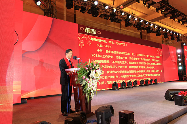 最后,金泰恒業副總經理詹望詹總上臺作了重要講話,高度評價公司在過去一年里所取得的成績,并代表金泰恒業對公司2018年的發展思路提出兩大要求,即以十九大精神為引領、以客戶需求為核心,要繼續不斷提升產品品質和居住品質,不斷為客戶創造價值,要以造福客戶為公司最大目標。