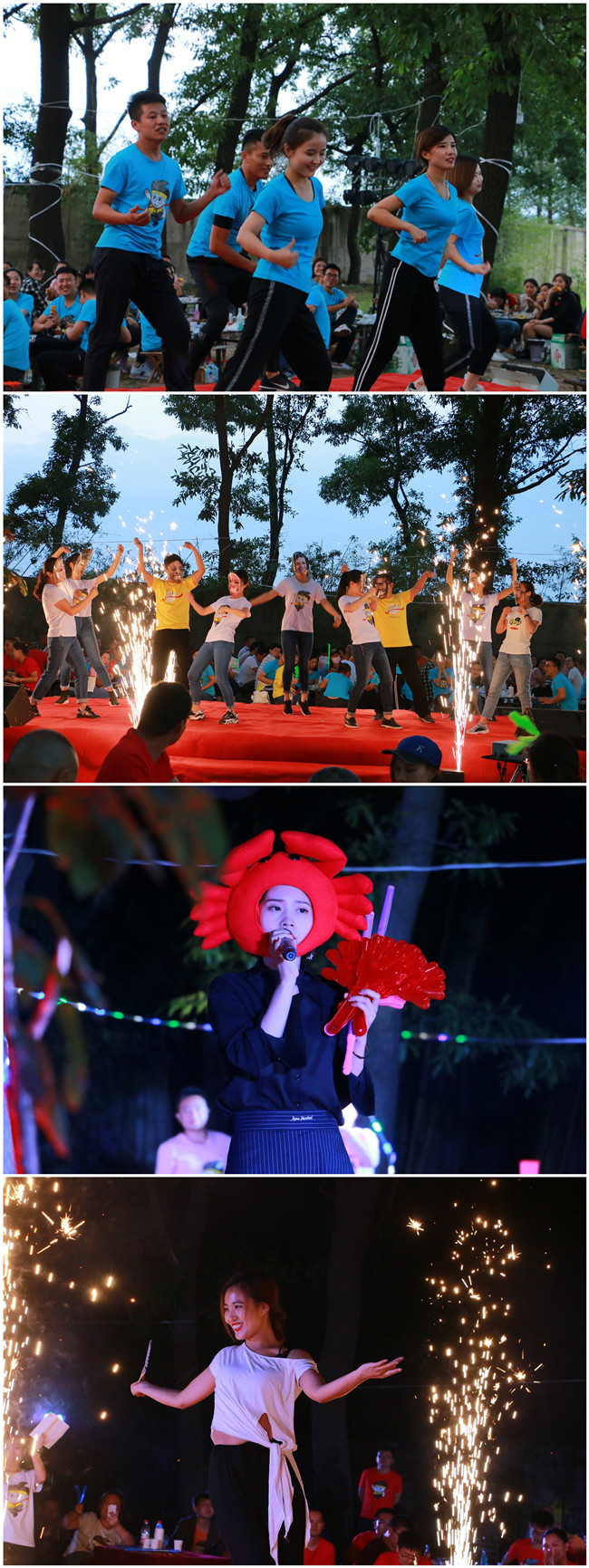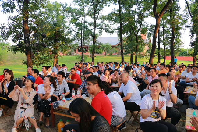晚會現(xiàn)場篝火隨風(fēng)燃動,節(jié)目精彩紛呈,美食種類豐富,大家一邊欣賞精彩的歌舞表演,一邊品位美食美酒、熱情交流、把酒言歡。值得一提的是,所有節(jié)目均由員工在最短的時間內(nèi)自發(fā)組織和彩排,食物是李官農(nóng)場自養(yǎng)自產(chǎn)的綠色食材烹飪而成,酒水涵蓋茅臺酒、啤酒和雞尾酒多個種類,甜點和水果種類豐富,味道精美。節(jié)目中間還穿插了六輪抽獎環(huán)節(jié),獎品異常豐厚,有一半的員工贏得了獎品。