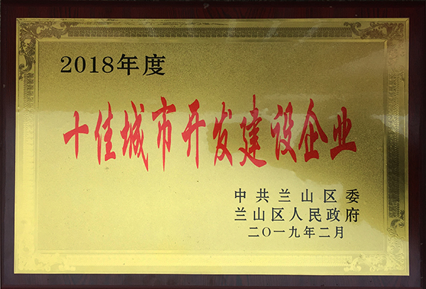 2月10日,在蘭山區經濟工作會議暨2018年度總結表彰大會上,山東泰盛恒房地產有限公司及子公司臨沂長裕置業有限公司分別榮獲2018年度“十佳城市開發建設企業”榮譽稱號。